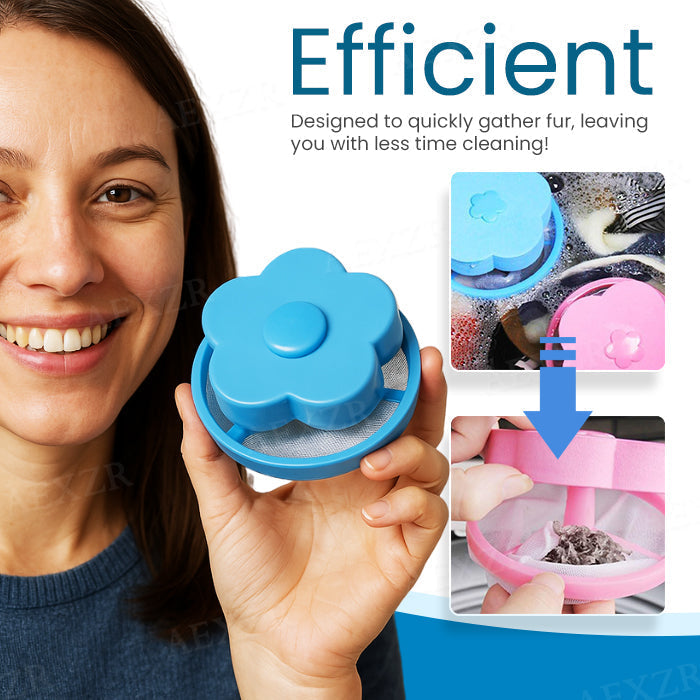 "I used to dread doing laundry because no matter how careful I was, my clothes would come out of the wash covered in dog fur and lint. It was especially embarrassing when dark clothes picked up everything and made me look unkempt. I even tried lint rollers and extra rinse cycles, but nothing worked well—until I came across this little blue flower-shaped filter. I was skeptical at first, but after one wash, I was shocked at how much pet hair and fuzz it collected. Now my laundry comes out looking clean and fresh, and I don't have to spend extra time picking off fur by hand!"